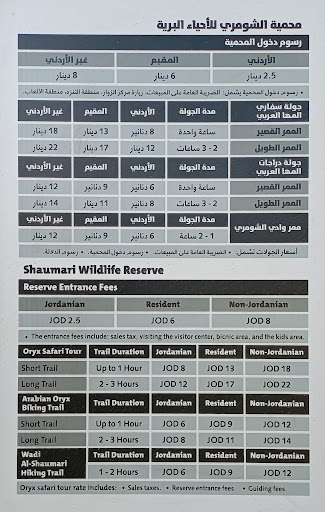 The Shaumari Wildlife Reserve Visitor Center does a very good job introducing the geology, flora and fauna of the region of Jordan's Eastern Badia to the visitor. Information signs complete with diagrams and maps allow one to learn loads in a very friendly way. Signs are in English and Arabic.