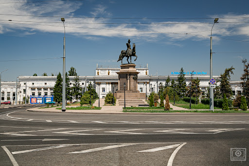 It's very pretty here. The monument is on the station forecourt, right at the end of Abylai Khan Avenue. If you come down the street you can see the monument from afar. There are benches that invite you...