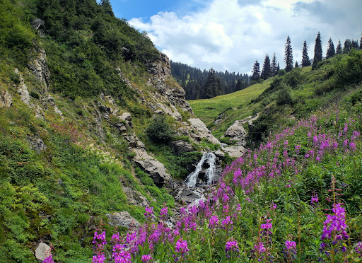 Read moreПривет всем! Прежде чем идти глянул отзывы. После прохождения можно резюмировать- всё так. Совет тем, кто хочет просто прогуляться и отдохнуть от городской суеты- не ходите в горы в выходные и праздники. Первый выход совершили в пятницу, второй в субботу, можем сравнить). В субботу даже птицы попрятались от многоголосого гвалта и музычки на любой вкус. Молодь толпами валит вверх поесть-попить. И не только минеральную воду. Теперь о маршруте, первая часть проходит по асфальту вдоль взятой в бетон речки. Всё довольно симпатично, везде указатели и карты с разьяснениями (если бы люди их ещё и читали) на трёх языках. Есть скамейки и беседки, даже один туалет типа "сортир", М и Ж в одном флаконе, здесь отдельная тема). Далее с одной стороны" дворянские гнезда", с другой-недостроенные заброшки- "дома с привидениями". Виды вокруг восхитительные. Далее пойдёте по дикой дороге. У всех подготовка разная, поэтому кто-то дойдёт до водопада за 2 часа, кто-то быстрее. Мы поднимались почти 4 часа. Выдохлись, но ни разу не пожалели. Наша цель была- водопад, в следующий раз пойдем на качели, потом на панораму. В октябре дни короткие, времени на всё не хватает. Чуть выше водопада уже лежит снег, утром и вечером холодно. Фотографий с маршрута +100500, добавлю свои, может кому-то пригодятся. 8.10.22 в ущелье проводился субботник по уборке мусора, собрали на эту акцию студентов с мешками. Мусора собрали ОЧЕНЬ МНОГО!! Вечером пошли вниз, встретили деда, который тащил с горы мешок с мусором. То ли студенты не заметили, то ли после них уже нагадили. Встечали этого "деда-волонтера" на Кок-Жайляу, тоже мусор вниз тащил, при этом часто вспоминал чью-то мать). Ходите в горы. Там хорошо, там вы встретите много хороших людей. И берегите природу. Всем добра, здоровья, мира. 16.05.23 снова побывали. Цветут яблони и груши, ушли от заморозка. Много клещей. Появился новый туалет с висячим замком). Много мусора. В 10 метрах от транспаранта с запретом разводить любые костры свежие кострища. Возле домов с привидениями суета, строительные работы, наверно то, что не смогли решить деньги, решили ОЧЕНЬ большие деньги. Чуть выше ровнять ещё две площадки под какие-то объекты. Грибов...