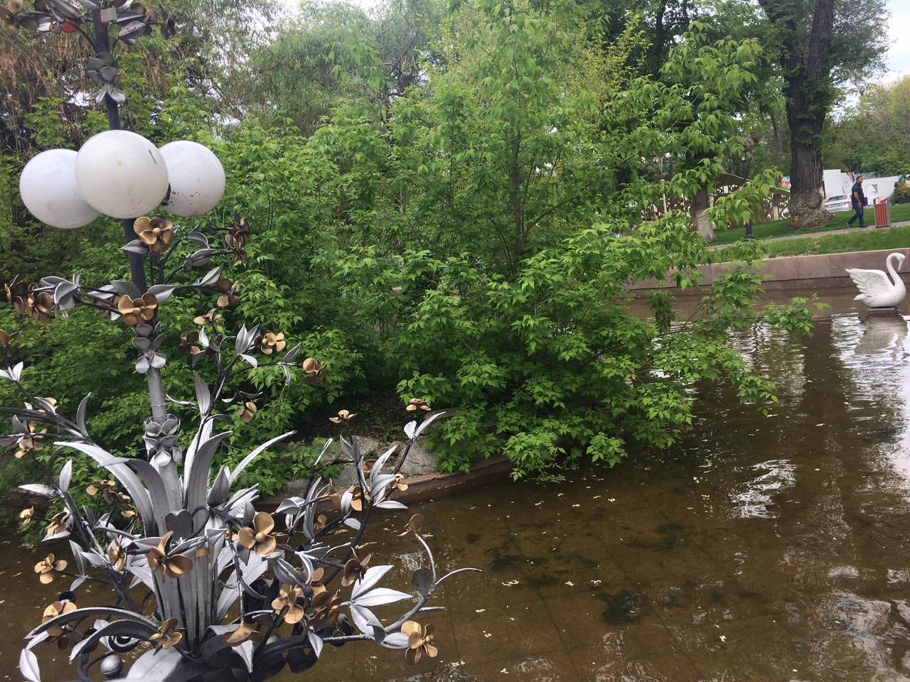 One of the best parks in Almaty for relaxation, walks and runs. Situated right in the middle of the city. There is a nice fountain, the monument of the Heroes of the Great Patriotic War. Right next to the park is the newly renovated Panfilov street with a lot of cafes. Over the fountain is the bridge where newlyweds put locks...