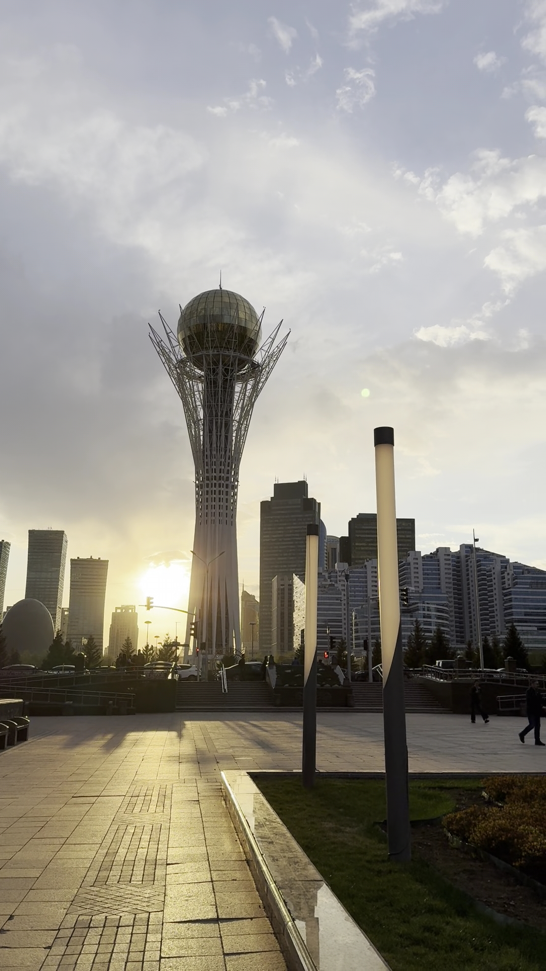 Its striking design, inspired by a Kazakh folktale about the mythical bird Samruk laying a golden egg in a poplar tree, features a slender, lattice-like steel structure resembling a tree, crowned by a shimmering golden glass orb.