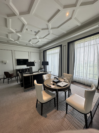 We had an Ambassador suite on top floor (room 1007 for those considering getting it) and unfortunately the shower was super annoying with poor water pressure and fluctuating water temperature ranging from super hot to chilly every 10 seconds. The hotel tried to fix it but whatever they did didn’t work so we asked to change rooms only to find the other room 3 floors down, with some very questionable (I really should say nasty) carpet stains all over and working desk that looked like it was teleported there from a cheap motel (room 707, avoid at all cost). I asked to change rooms right away for the second time in a single day. Unfortunately the next room they moved us to wasn’t ready at all—the door was wide open and there were some men walking around inside (unknown both to myself and to the hotel staff member who was with me), ignoring us at the doors which made the encounter only weirder.