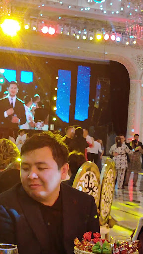 Отличный ресторан, зал богато и красиво оформлен, трансляция торжеств не на 1 экране, как обычно привыкли смотреть, аж ещё дополнительно 2х сторон молодоженов, круглые экраны, красиво оформлено... Зал большой, есть Хол, гардероб, лестница с небольшим балконом, лестница ведёт за кулисы и видимо на кухню, кухня очень вкусная, богатая, были в небольших кесюшках деревянных куырдаки, красную рыбу, стейк, бешпармак, и все в этом в роде, десерты особенно пироженки которые были помимо большого торта, тоже были не ап тяп, а реально вкусные... Отдельно хочу похвалить и персонал обслуживание + официанты сразу убирали использованные салфетки, стаканы не были пустые, то есть меньше половины уж точно не было за весь период...