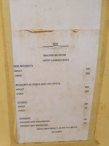 The entrance fee is Kes 100 per person that you use to access the pillar, Portuguese Chapel, House of Chapel, and Malindi Museum with guides...