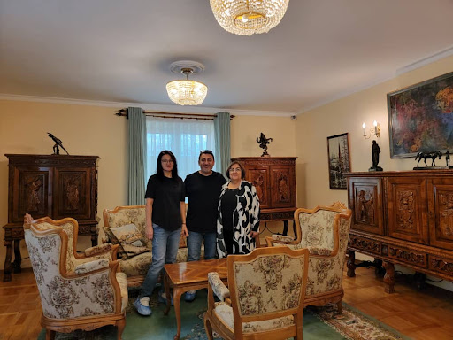 Read moreHarika bir deneyimdi, Aigerim (Sadece Türkçe bilenler için, yaninizda Kirgizca veya Rusça bilen biri ile gitmek gerekli) hanim ev sahibi gibi bizleri misafir edip, çok samimi bir şekilde, kıymetli yazarın yaşamı ve özel hayatıyla ilgili çok ilgi çekici ve doyurucu bir şekilde bilgilendirdi, kıymetli edebiyat öğretmenimin Feyziye Alper'inde tavsiyesi ile yapılacaklar listesinde en başa eklediğim gezi noktasinda bulunmaktan çok mutluyduk.. Bişkek'e geldiğinizde kesinlikle uğramalısınız. Dünyaca ünlü kişiliklerin Aytmatov tarafindan misafir edildiği salonda sizlerin de yolculuğu başlıyor ve yaklaşık 1 saat süren serüvenden keyifle ayrılıyorsunuz. Yazarın oğlu Eldar'da aktif olarak, müze olmayan binada yaşıyor ve vakit buldukça gelen konuklarla yüz yüze ilgileniyor. Gitmeden rezervasyon yapmanız gerekiyor, biz şanslıydık, içeride konuk olmadığı için rezervasyonumuz olmadığı halde girebildik. Başkanlık binası ile komşu olan mülk askerler tarafından (bizdeki nizamiye kapısı) korunuyor, içeri ile iletişime geçip gayet güzel şekilde karşılama yapılıyor.