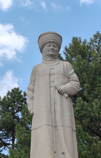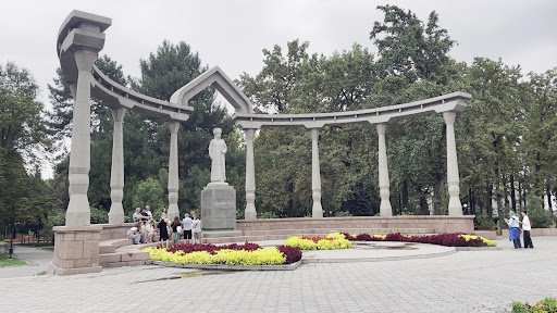 (1-Kurmanzhan Datka Statue (2-Memorial For Red Guards Kurmanjan was born into a rich family of the Mungush clan in the Osh region. At the age of 18 she was supposed to be married to a man whom she did not see until her wedding day. When she met him, she did not like him and broke with tradition — first fleeing into neighboring China and later deciding to stay with her father, Mambatbai. In 1832, the local feudal lord, Alimbek, who had taken the title "Datka" and ruled all the Kyrgyz of the Alai, was attracted by the young, vivacious woman and married her. An instrumental politician in the increasingly decrepit Kokand khanate, Alimbek was murdered in the course of a palace coup in 1862 and his widow Kurmanjan was recognized by the khans of Bukhara and Kokand as ruler of the Alai and given the title of "Datka".[2]