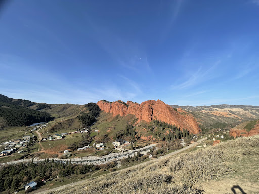 Jeti-Ögüz, or ‘Seven Bulls,’ is a collection of massive red sandstone cliffs that look like Mother Nature tried to stack giant hamburgers but got distracted. According to legend, this formation was born from a tragic love story, but let’s be real - it’s probably just millions of years of erosion showing off. The views are stunning, though, and the air is so fresh it might make your city lungs panic.