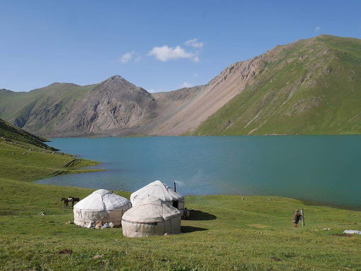 We choose here rather then the famous Song Kul, and we love it! You could take a easy day hike to reach the lake. Be prepared there's a river about knees high to cross and the water is freezing cold. There are three Yarts (Ususally, double check in the village) there around the lake. Amazingly tranquil. We had a wonderful time with the family. They still live in an old nomadic way, moving here every summer time. Making yogurt and cream...