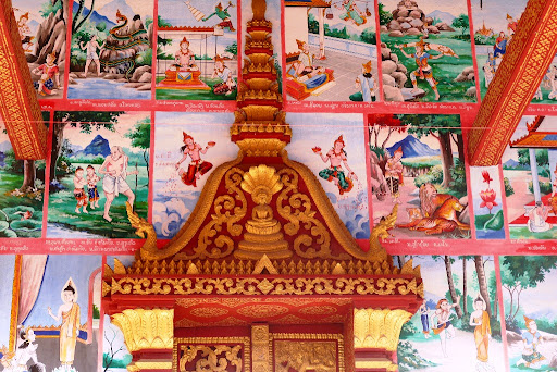 Wat Manorom is a major Buddhist temple and monastery in Luang Prabang, Laos. There are several theories as to the date of its founding; it may have been founded in 1372 or 1375 by Samsenthai, but it may also date from the reign of Laasaenthai Bouvanaat around 1492.