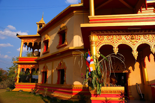 Read moreVat Phra Phome Phao Santi Chedi Situé à environ 3 kilomètres de Luang Phabang, en amont de la rivière Nam Khan, le Vat Phon Phao surplombe une petite colline qu’entretiennent des femmes moines. Ici, plusieurs femmes sont venues se retirer loin de l’agitation de Luang Phabang, et travaillent aux menues tâches quotidiennes, dont le jardinage. La singularité de ce temple, commence par son architecture octogonale. Erigé dans les années 1950, ce temple est aussi exceptionnel par sa décoration intérieure : les peintures représentant des scènes traditionnelles bouddhistes sont de toute beauté. le second étage et ses peintures illustrant les différentes architectures Bouddhistes des pays du Sud-Est asiatique est très intéressant le dernier étage, tout en couleur or (comme la salle de réception de l’ancien palais royal) marque l’ultime préciosité de l’élévation