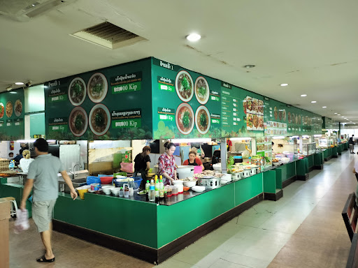 タラート・サオ1の3Fにあります。 タラート・サオは大通りに面した建物と、その向いにあるタラート・サオ1の2つからなります。フードコートがあるのは、タラート・サオ1の方になります。 ■システム 入口のスタンドで金券に交換します。 食べ物を購入するときは、この金券を使用します。使いきれなかった金券はリファウンド(返金)できるので、一品40kくらいで見積って金券化すればいいと思います。 注文して金券を出せば、お釣りも金券で却ってきます。カウンターで後ろの人の邪魔にならないように待っていると、完成した料理を手渡されます。 食べ終わった食器類は、邪魔にならないようにまとめて机の上に置いておくと、清掃員さんが回収してくれます。 ■フードコート内 ラオスとは思えない清潔感あふれる空間です。飲み物屋さんと、麺やチャーハン、カレー屋さんとラオス料理中心です。フルーツジュース屋さんなどもあるので、カフェ利用もできます。基本、どれも注文が入ってから調理を始めるのでほんの少し待ち時間が発生しますが、出来立てなので美味しいです。 ■料理 エビ炒飯とフルーツミックスジュースをいただきました。先述の通り、出来立てなので間違いなく美味しいです。エビは素揚げされており、殻付きですがポリポリと食べられます。 チャーハンもクセが無く、日本人には食べ慣れた味です。油っこさも控えめで美味しいです。スープは牛骨ベースで、食べ慣れない味でしたが美味しかったです。 フルーツミックスジュースは南国フルーツが贅沢に使用されており、かなりコスパがいいです。味も勿論とても美味しかったです。 路面のローカル店へ行く勇気は無いけど、ローカル料理を楽しみたい方にオススメです。