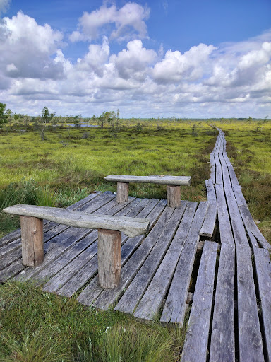The trail is open again, it was closed for renovation. We visited the bog from the northern side and got almost to the end of the southern part of the trail. About 1 km of the trail from the northern side was renovated and in perfect condition. Then about 300 meters is very damaged and difficult to walk. The rest of the trail in the southern direction through the bog is in moderate condition, but possible to walk. I do not know if the bog is accessible from the southern entrance. In some places, in forest, the trail is badly damaged and there is written 'STOP' on it. Anyway, from the northern entrance, it is possible to walk from the northern to the southern edge of the bog.