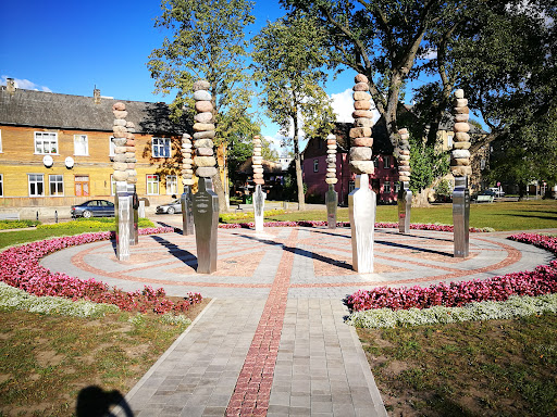Read moreŠo objektu ir radījis tēlnieks Kārlis Īle. Objektā ir attēloti desmit cilvēku silueti, kuri simbolizē desmit mūsu valsts gadus. Uz katra silueta ir apraksts par tās desmitgades svarīgākajiem notikumiem. Metāla silueti tur uz sevīm simts akmeņus, kas simbolizē Latvijas pastāvēšanas gadadienu. Starveida bruģējums Laika rata laukumā, simbolizē laika ratu, kas turpina ritēt tālāk cauri...