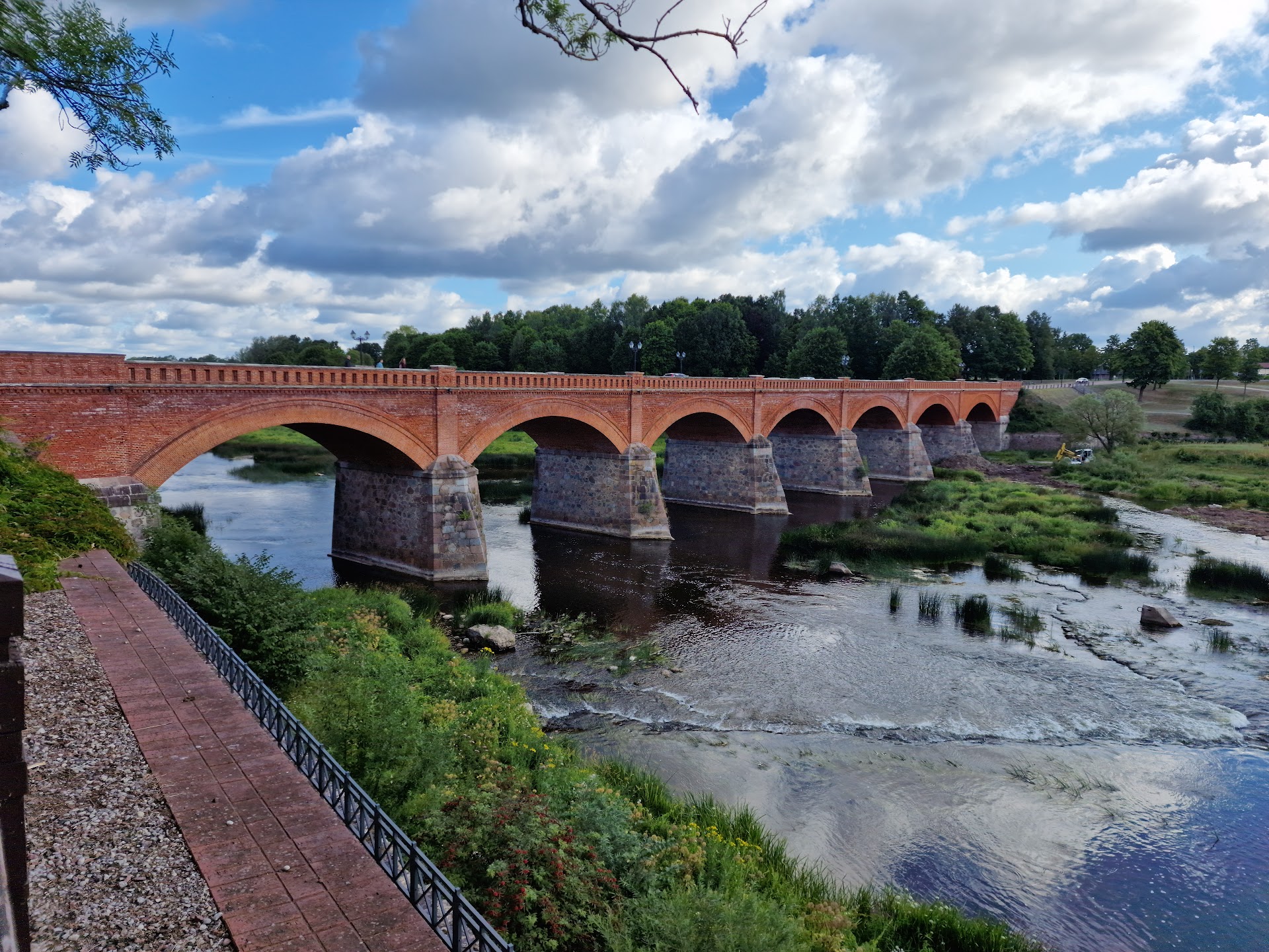 СТАРЫЙ КИРПИЧНЫЙ МОСТ ЧЕРЕЗ РЕКУ ВЕНТУ был построен в 1874 году. Он состоит из семи пролетов кирпичных сводов. Общая длина моста составляет 164 метра, и это один из самых длинных автодорожных мостов из глиняного кирпича в мире. Автором свода моста и руководителем строительства был Фридрих Стапрани, а автором всего мостового комплекса и подрядчиком был очень известный архитектор того времени Отто Дице. Качество строительных работ было очень высоким, так как при строительстве использовались самые качественные строительные материалы - лаборатории Рижского политехнического института проверили кирпич и цементный раствор. Во время Первой мировой войны русская армия разрушила (1915 г.) два пролета Кирпичного моста. После войны на месте разрушенных пролетов были построены временные постройки. Пролеты были восстановлены в 1926 году по проекту профессора Латвийского университета Павилса Павуланса. Кулдигский районный совет восстановил мост при финансовой поддержке Европейского фонда регионального развития. Покрытие настила моста и тротуаров было изменено, но цвет и дизайн настила моста и тротуаров были выбраны аналогично историческому покрытию. В него были добавлены новые функции, включая новую систему освещения, новую систему отвода дождевой воды и утолщенные своды для дополнительной безопасности. Рядом были построены смотровые площадки, а лестницы вдоль остатков старой крепостной стены были отремонтированы, чтобы улучшить...