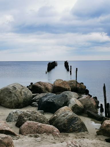 Read moreУдивительное место для отдыха всей семьёй и для влюблённых. Очень романтическое, особенно ранним утром, когда на пляже много птиц и чайки с утками ждут отдыхающих с угощениями. Есть на пляже детская лазанка и качели, а также лавочки, хотя и мало. Есть автомат с кофе и жидким шоколадом. Есть мужская и дамские комнаты где будет удобно и людям передвигающимся на коляске. Здесь можно наблюдать за дикими утками с их большими семьями, а также белой Африканской цаплей, чайками- нескольких видов. Постоянно можно видеть чёрных бакланов,- которые после охоты за рыбой, сушат свои крылья сидя на брёвнах разрушенного причала. В этом месте снимали эпизод,- сцену, из фильма - ,, Долгая дорога в дюнах". Приезжайте всегда когда дует северный ветер, и тогда вода в этом месте будет тёплая. Песок очень мелкий, чистый, - в этом месте в море впадает небольшая речка. Возьмите с собой плед, если захотите встретить закат. Всем...