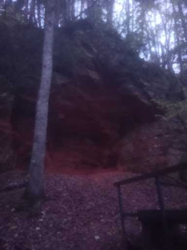 Read moreЧервоні Пагорби - це високі береги заплави річки Гауя. Через піщаник просочується вода, багата на залізо, і фарбує стіни в червоно-бурий колір. Стіна висотою близько 10 м, у ній є кілька неглибоких гротів, два з них містять джерела залізистої води. Перший грот із джерелом може розчарувати, але треба йти далі, там найкрасивіший грот. Відвідувати варто вдень при соняшному світлі, тому що гроти знаходяться серед густої рослинності, і ввечері або в похмуру погоду там досить темно.