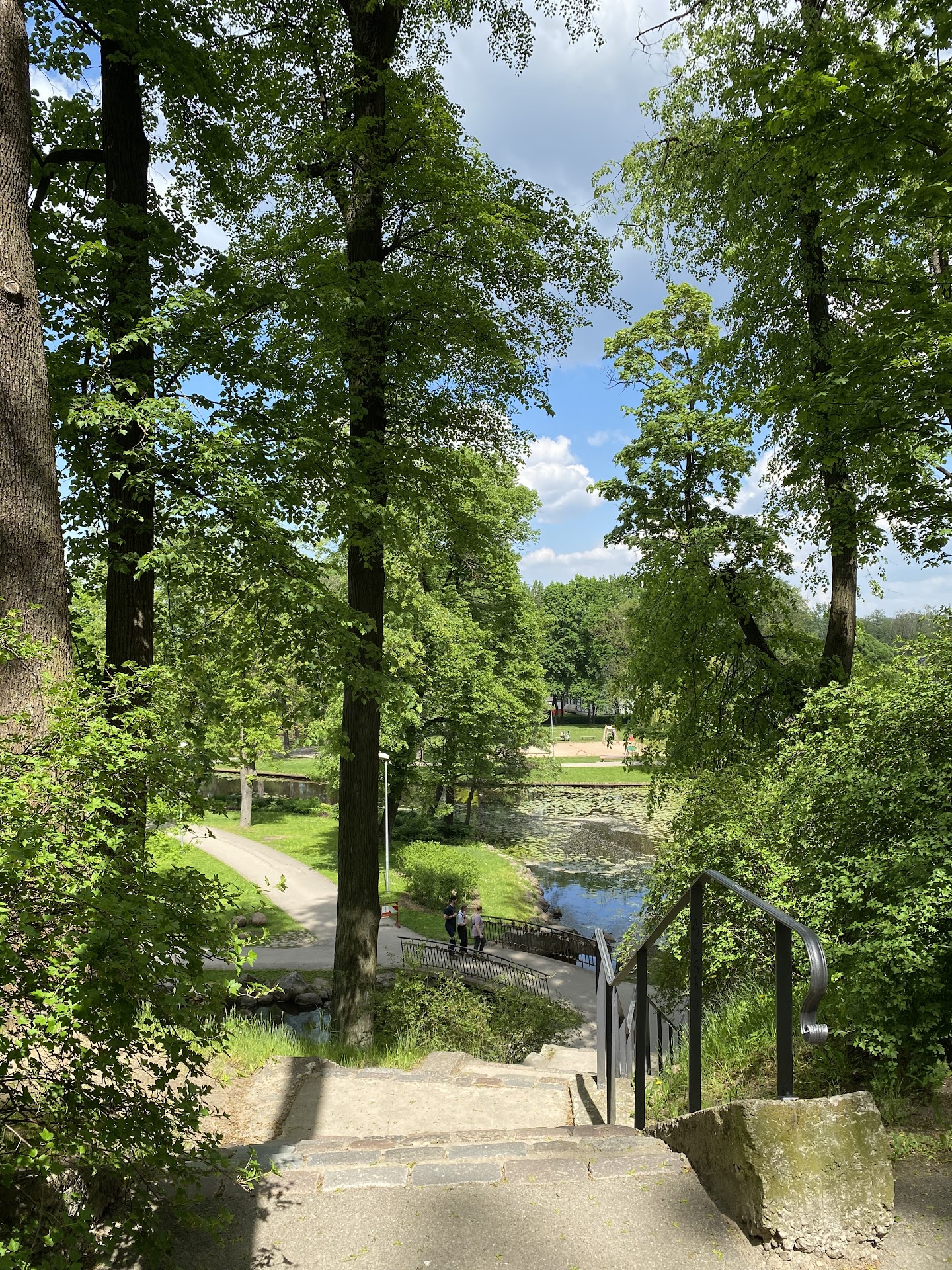 One of the best and favourite park that I have been in RIGA so far. Not too big, small but great with small bridges, water fall, greenery pathways and small ponds. Dozens of ducks swims all around the ponds and it's adorable with little ducklings. Can feed ducks. Most of the time well groomed. It has a playground for kids and usually few kids there. Great place for kids as well as adults to sit for a while having a snack sitting on benches or even walk/jogging around the park. Uphill area is not great, not well maintained. couples strolling around the area and bit different from...