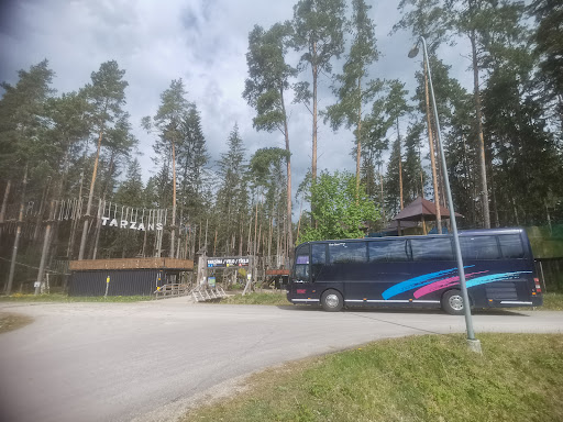 Tērvetes "Tarzāns" joprojām ir viens no labākajiem tāda veida atpūtas parkiem Latvijā!Kaut arī pagāšo sezon šis parks bija pilnībā cietis,pilnībā izpostīts pēc dabas stihijas-vētras,viņi ir apbrīnojami malači,viņos ir tāda degsme un entuziasms,ka parks ir atjaunots,šķēršļu trases ir atkal kolosālas,ir jauna doma ieguldīta,jo ir sestā trase ar kolosāliem nobraucieniem,kur karstā laikā,faktiski var atpūsties nobraucot pa gariem nobraucieniem,izbaudīt dzesējošu vējiņu!Parka kolektīvs ir ieguldījis vienkārši fantastisku darbu to atjaunojot!Jā,trases ir mazāk(bet tas noteikti ir tikai pagaidām) kā agrāk,tikai sešas,bet ar jaunu izdomu,tieši bērniem un jauniešiem piemērotākas,patīkamākas.Tā joprojām ir vieta,kur tiešām var pavadīt pilnīgi visu dienu,atpūšoties ar visu ģimeni!Ir plaša bezmaksas autostāvvieta,ir labierīcības(protams ar laiku gan vajadzētu šīs plastmasas tolešu būdiņas nomainīt pret jaunām,izbūvētām un ērtām,jo karstā laikā,smaka šinīs būdiņās ir nereāla,neizturama,kā arī tajās nav elementāras higiēnas lietas-nav kur nomazgāt rokas!!!)Par to lūdzu padomājat parka vadība!). Otrais un ļoti lielais mīnus ir tas,ka parka vadība tagad nav padomājusi par tādu lietu kā-milzīgie āra kafejnīcu lietus-saules sargi,kurus vajadzētu uzstādīt virs atpūtas zonām,virs galdiņiem,jo karstā,saulainā laikā,kad tur atpūšas ģimenes,tad reāli nav iespējams nosēdēt zem klajas debess,zem svilinošas saules!!!Tā var notikt nelaimes gadījumi un būs jāsauc ātrā,medicīniskā palīdzība!!!Ir ļoti nepieciešami šādi lietus-saules sargi,kur patverties no svilinošās saules un lietus(kad tāds uznāk),jo patreiz tur nekur nav ēnas,pēc dabas stihijas nav vairs kuplo priežu zaru virs galvām,nav ēnas!!! Parka teritorijā ir kafijas automāts,ir iespēja nopirkt bezalkoholiskos dzērienus,sulas,limonādes,saldējumu(bet kosmiskās cenās),tāpēc,tādas lietas ieteicams jau iepriekš nopirkt un paņemt līdzi!Jā un vēl no patīkamām lietām-var ņemt līdzi savus četrkājainos-pūkainos mīluļus,jo parkā ir atļauts tos ievest.Cenas par šķēršļu trasēm-ļoti demokrātiskas. Pilnīgi iesaku šo vietu atpūtai ar visu ģimeni,it sevišķi bērni būs sajūsmā!Iesaku ņemt līdzi visādus našķus-picas,čipsus,kūkas,jo tur to visu drīkst ienest un ēst pie galdiņiem atpūtas zonā!Tāpēc tā ir kolosāla vieta atpūtai ar visu ģimeni! Ja parks piestrādās pie lielo lietus-saules sargu uzstādīšanas un kvalitatīvām labierīcībām,tad pilnīgi noteikti es dotu 10...