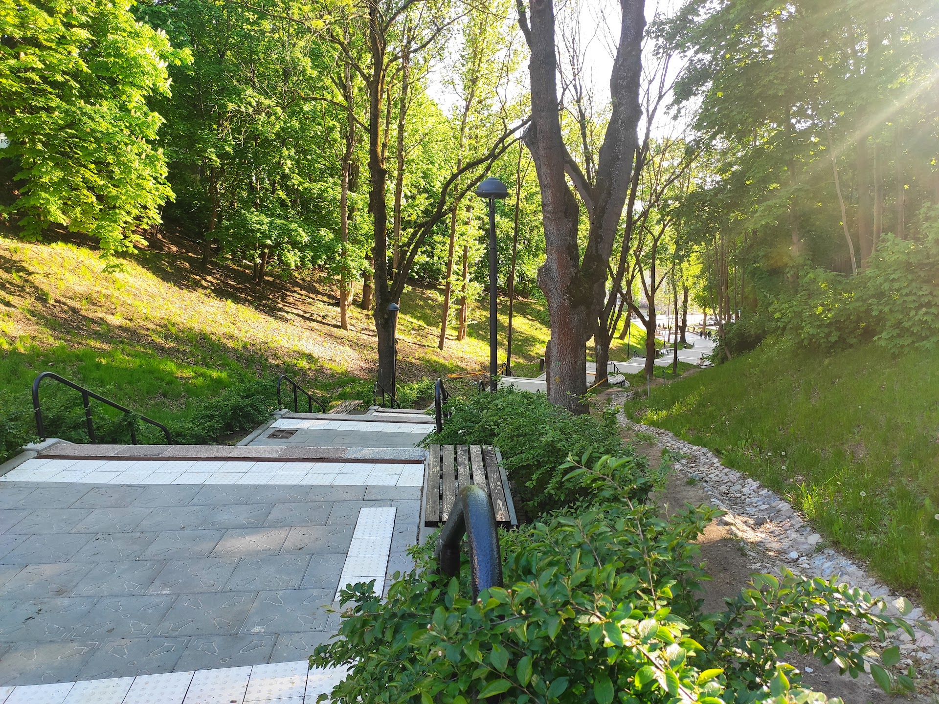 Read moreSuoliukai be atramų, atsisėdus negali atremti nugaros. Labai blogai, nes negali žmonės normaliai pailsėti. Nepraėjus metams nuo naujų suoliukų pastatymo, jau baigia nusilupti nuo jų visi dažai. Vandens nubėgimo takas kur grįstas akmenimis, per siauras. Per normalią liūtį plauna šalia esančias žemes ir apačioje kur yra fontanas. Atplukdytas žemes galima pastoviai vežti karučiais. Trūksta suoliukų apačioje prie fontano. Viršuje prie fontano, galėtu būti kaip prie Kauno pilies. Iš visų pusių ant šlaitų suoliukai. Tada čia galima būtų rengti daugiau visokių renginių. Šlaitai iš abiejų pusių laiptų normaliai ne apželdinti. Vienur matosi dirvos tvirtinimo tinklas ir kažkokios detalės, kitur duobės, išvirtusios medžių šaknys. Niekur nėra jokių gėlių. Žodžiu trūksta dar visų išvardintų dalykų, kad galėtum...