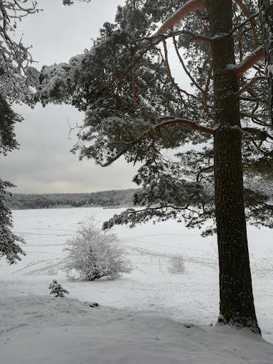 Unusual time to go for a picnic, but here we are. Great view, lake, benches scattered around with campfire grill and pot holder. Woods are webbed with paths for hiking or having a stroll whichever works for you. In summer it's also a spot to spend with family or your dog. Even in winter people come to swim in the lake but in summer it's a popular spot so unless you come at an odd time it might be tricky to find a free spot unless you...
