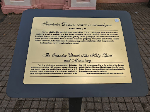 Read moreThe Orthodox Church of the Holy Spirit is the principal Orthodox church in Lithuania, established by the Vilnius Orthodox Brotherhood. After a fire, it was rebuilt (1749-1753) in the distinctive Vilnian Baroque style by architect Johann Christoph Glaubitz. This creates a unique mix of Catholic Baroque form with a traditional Orthodox interior, featuring a stunning iconostasis and elaborate stucco work. The church holds immense spiritual importance as the resting place of the Martyrs of Vilnius (Saints Anthony, John, and Eustathios). It is affiliated with the adjacent Orthodox monastery and convent—the only working Orthodox monasteries remaining...