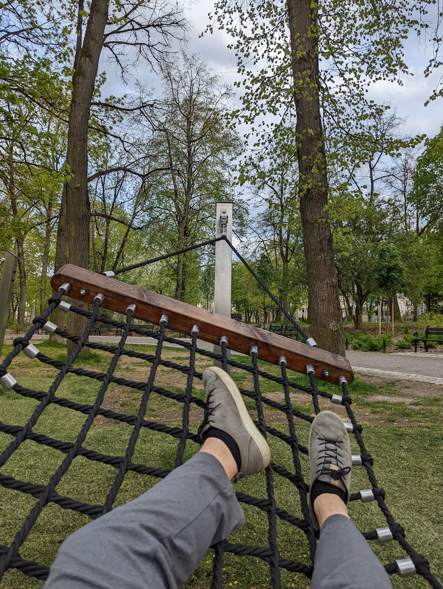 Read morePuikiai sutvarkyta vieta pritaikyta tiek ramiam poilsiui tiek buvimui su vaikais. Aibė suoliukų po medžiais ar prie būsimo paminklo, yra ir po stogu. Taipogi yra trys hamakai iš virvių. Bet jie prie vaikų žaidimo aikštelių, tad ramybė sąlyginė:) Vaikam dvi aikštelès su minkšta gumine danga ir saugiomis pramogomis. Dičkiam(bet tinka ir mažiesiems su tèvų priežiūra) nusileidimo vamzdis (labai rekomenduojamas mano šešiamečio), bei laipiojimo visokie reikalai. Mažesniesiems didelė smėlio erdvė, dvi čiuožyklos ir nemažai kitų pramogų. Aikštelės kitokios nei dauguma mieste ar miegamose rajonuose, tai labai smagu rast ką naujo. Yra tvarkingi tualetai. Nors lyg ir mokami, bet mums grynų nepriėmė ir durys nebuvo užrakintos. Maloniai nustebino, kad skvere beveik negirdėti judrios pylimo gatvės, galima ramiai prie čiurlianančio vandens pabūti(taip yra ir toks). Smagu, kad daug medžių ir matyti pastangos juos išsaugoti. Labai žalia įdomi...