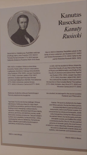 The permanent exhibition is largely a collection of portraits of Lithuanian aristocracy, intellectual and artistic elite, which underscores the influence of the Polish aristocratic portrait tradition on the artistic vision of its junior partner in the Polish-Lithuanian Commonwealth. (Might be of interest for those who struggle to differentiate Lithuania from its Baltic neighbors Latvia and Estonia, artistically influenced in a very different way, by a protestant German culture of the Hanseatic league of independent cities with merchants and guilds as important social actors and art buyers.)