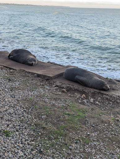 We also saw LOTS of brown fur seals around the stands - some right up against the fence. They're not interested in the penguins and the penguins don't seem bothered by the seals.