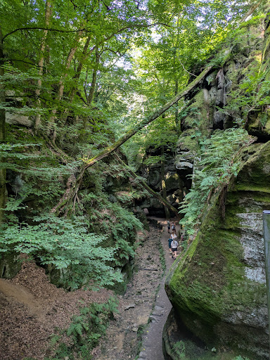 Read moreGelopen met een kind van 9 en een baby in de draagzak. Ik vond het best pittig tot het uitzichtpunt op de helft, veel trappetjes. Door de droogte veel zanderige keien en traptreden, hierdoor moest ik soms wel goed letten op hoe ik mijn voeten neerzette ivm kans op uitglijden. Als je start voor half acht in de ochtend kom je in principe niemand tegen zo in het hoogseizoen, en loop je ook niet in de hitte. Soms is het pad wat smal en loop je langs een stijle afgrond. Dit maakt het natuurlijk prachtig, maar ik kan me voorstellen dat ouders met kleine kinderen dit graag weten voor ze hier aan beginnen, het is niet perse een ongevaarlijke wandeling of ‘a walk in the park’. Wij hebben de raiberhiel overgeslagen, dit werd geadviseerd door het toeristisch informatiepunt in berdorf, deze is absoluut niet geschikt als je een baby voorop draagt in de draagzak. Ook de siweschleff hebben we overgeslagen omdat er een stuk is van 30cm, en dat is geen doen met een baby op je buik en een rugzak op je rug. Beide keren is er een ‘alternatieve route’; gewoon de bordjes b2 volgen. Vanaf het uitkijkpunt rond 3,6km is het grotendeels vlak over een...
