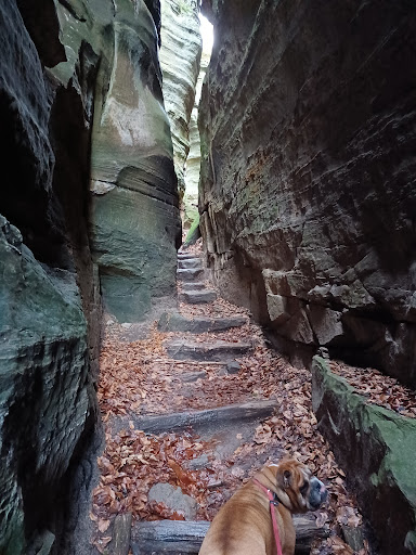 Read moreLe Siweschlëff est un endroit emblématique du Mullerthal, du sentier local B2 près de Berdorf pour être plus précis. Son nom luxembourgeois se traduit par 'Sept Gorges' en français. En fait, c'est un gros bloc de grés luxembourgeois qui est traversé par sept gorges ou fentes variant entre 20 et 30 mètres de profondeur et allant jusqu'à 30 cm ! ! ! de largeur. C'est vous dire qu'on a intérêt à rentrer les abdominaux ( si on peux)😊. A coté des sept gorges, qui sont numérotées et que l'on peut traverser en suivant les numéros, il y a moyen de monter sur le plateau au-dessus, qui vous donnera une vue panoramique sur la vallée de l'Ernz noire et celle de la Sûre et on peut y voir les haut-plateaux de Ferschweiler en Allemagne. Inutile de vous dire que cet endroit est une formidable place de jeux et une vraie aventure pour les enfants. Il faut bien accompagner les jeunes lors de la traversée, surtout lorsqu'ils veulent monter sur le plateau, car il y a des falaises qui descendent de quelque 60 à 100 mètres et même s'il y a des barrières de sécurité, il vaut mieux rester vigilant. A déconseiller sous la pluie et encore plus sous la neige, même si cet endroit reste sublime dans les conditions hivernales. A quelques pas de là, il y a le parc d'escalade et on peut y observer des sportifs de tout âge s'exercant dans leur sport favori. A voir absolument. Bonne balade et...