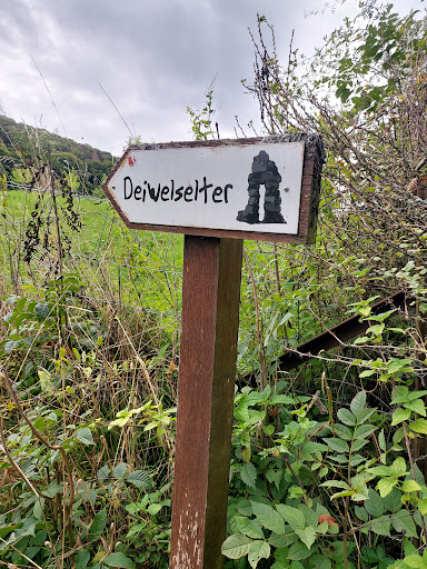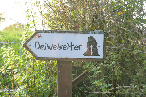 Ich traf einen alten Greis welcher unaufgefordert und ungewollt mir erzĂ€hlte wie der Deiwelselter zu seinem Namen kam! Wie einst ein Blitzschlag den alten Dolmen zersprang und die Diekircher Dorfbewohner wie besessen daraufhin die Reste auftĂŒrmten um Gott zu besĂ€nftigen. Doch es half nichts. Insgeheim jedoch war es der Teufel! Doch sie waren alle fehlgeleitet und als der Teufel ihnen dann befahl den Pfarrer auf dem Tor den Raben zum FraĂ zu opfern taten sie es ohne Zweifel! Leider nicht wie bei Isaac in der Bibel kam kein Engel um sie zu stoppen. Noch kann man Raben ĂŒber die Felder ziehen sehen und in ihrem Ruf das Lachen des Teufels hören! Daher hat nebenbei auch das nahegelegende Gilsdorf als Dorftier den Raben gekriegt! Der alte Greis zog weiter in den Wald und ich etwas verunsichert...