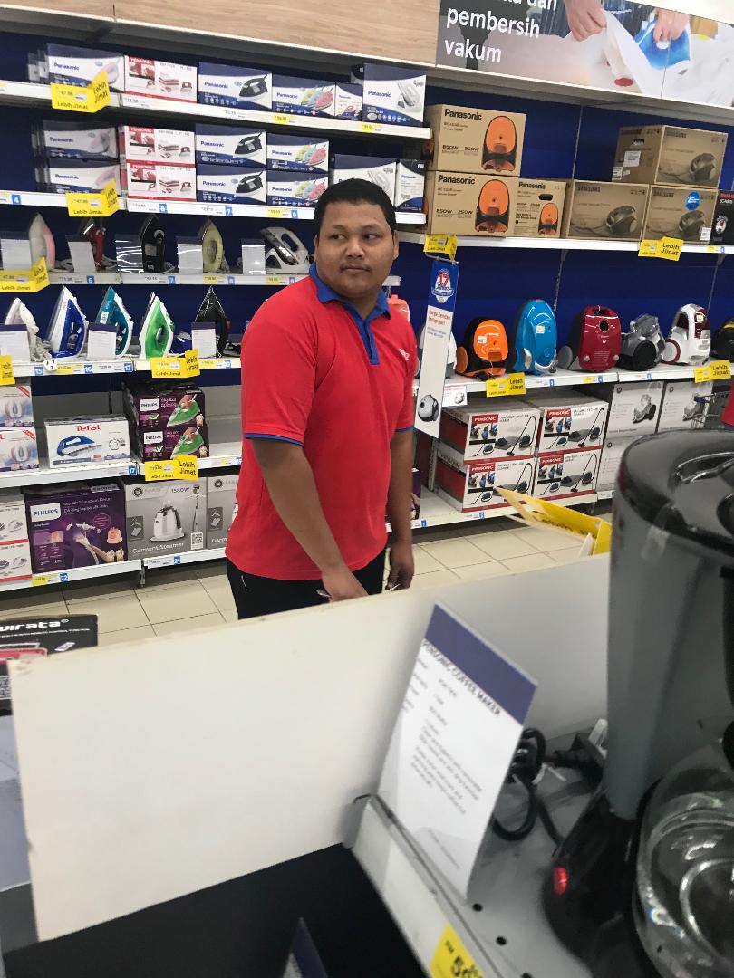 I was at Tesco Extra Ampang on 13/4/19 (5.30pm). I was about to buy LED fluorescent bulb which I approached a malay guy at the electrical section (per the photo) to ask to test the bulb.