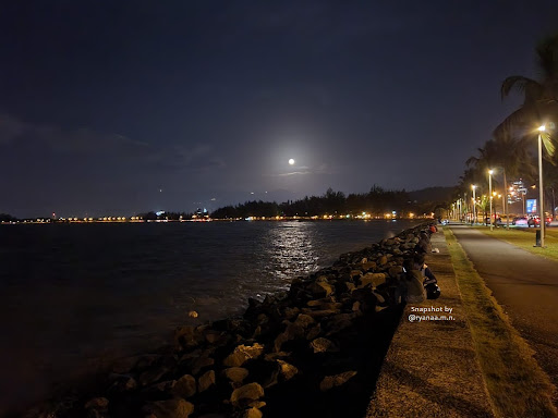 Read moreI love the ambient but my eyes only focus on the tracks, ocean, sky and the safety^5^ The place usually crowded during weekends, Fasting month (sungkai hour) and public holidays^3^ If only the lightings be switched on along the park at night time for night jogging or walking, how wonderful it will be! Much more safer than in dark with no patrolling^2^ The cleanliness of the park and beach are sightly poor but no mosquitoes (Thank God!), that's the most important thing for a 'sweet blood' kind like me^6^ Talking about Sweet Blood I'll recommend you to taste the Sweet Corns which is located just at the last end corner of the Stall facing main road and entrance at affordable price^7^ So, to cut my review in short: The entrance and parking are free, food is at affordable price, a long distance calories burnout, the beautiful beach (just pick up the rubbish if you're truly a beach lover yeah), wait for the Sunset (not the best one but at least you watch while eating sweet corns) and the full moon WOW! That's all from me...