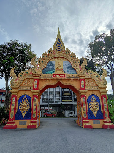 The temple grounds are decorated with various mythical religious creatures, such as the traditional Thai Nagas, and deities that popular Thai religion "borrowed" from other cultures, a mixture of Hinduism and Taoism. The statue of Ganesha, the elephant headed Hindu deity is placed at the main entrance. On the left, there is a beautiful shrine consecrated to the goddess Kuan Yin, a Mahayana Bodhisattva, and on the far side leading to the burial grounds, there is a small shrine to the Land God, a Taoist deity. In spite of its modest size, Wat Buppharam has arguably one of the largest temple arches in Penang.