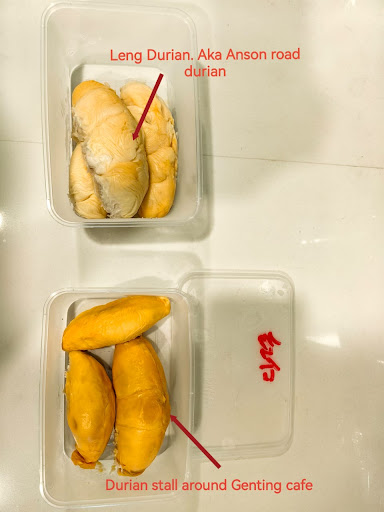 Order a red prawn durian from this stall and durian served look and taste different. Me and my friend (local penangnite) just tasted 1 piece each and totally fed up with such seller, directly ask to pack as this seller is totally tourist trapping. Drove to another durian stall where there's more local and buy the same red prawn durian. Picture shown is the comparison of the durian .Picture - bottom container red prawn durian (from other local stall) is the the typical red prawn durian would look like and taste totally different from this anson road. I ordered for pure red prawn durian not some cross bred version. No need waste your time nor money with such seller. If your not local just avoid such seller. Distaste and repulse from...