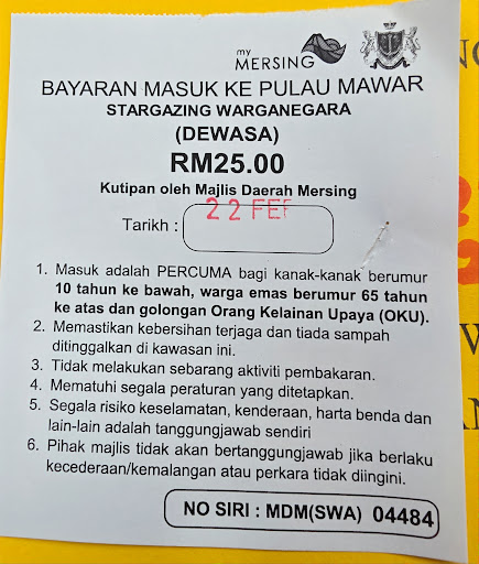 Read moreIf you want something different on your vacay, you should go here @Pantai Mawar a.k. Pulau Mawar, Mersing Johor. This is private beach where we must pay according to our activities.. You can stay for stargazing but must pay RM10 at the counter. The beach is clean and superb view.. You can also trekking to Pulau Mawar and ootd there.. it have a beautiful colurful rock cave.. no stall or cafe here.. it is very quite...