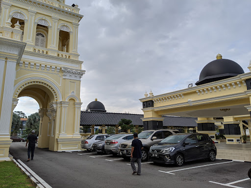Read moreOne of the excellent architectural colonal building designed for a mosque in Johor Bahru . Marbles used for flooring, walls and covers for the pillars in the mosque. . Situated on a hill along the shores of Straits of Johor, it is distinctively visible as worshipers drive along the road towards the Johor Bahru City. Next to the Pusat Islam Johor on the right and Johor Zoo on the left, it is easily accessible with well maintained roads. . There is a column where the history of them mosque is displayed near the ablution area. Seeing the praying area, the mosque could easily for about 1,000 worshippers maybe more.. . Abiding to the guidelines spelt by KKM, every worshippers must scan the body temperature and registration through MySejahtera only is a must before allowed entering the mosque. Bringing worshipper's praying mat. The floor are marked to where and distance between worshippers are observed. . There are also designated area for female worshippers who wishes to pray in this mosque together with separate ablution...