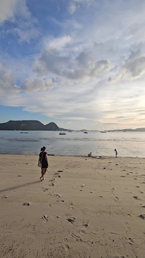 This beach is super clean and perfect for chilling out while enjoying lovely sea views. Sadly, swimming isn't allowed here, but it's still a great spot to soak up the sun, even though you won't see the usual waves you'd expect at the beach. It's really quiet and peaceful, with no cool sea breezes blowing. It's best to visit in the evening when it's not so hot. My kids had a blast playing in the sand. There are a few water taps around to wash off the sand, which is handy. Overall, it's a nice place for a relaxed family outing, just keep in mind...