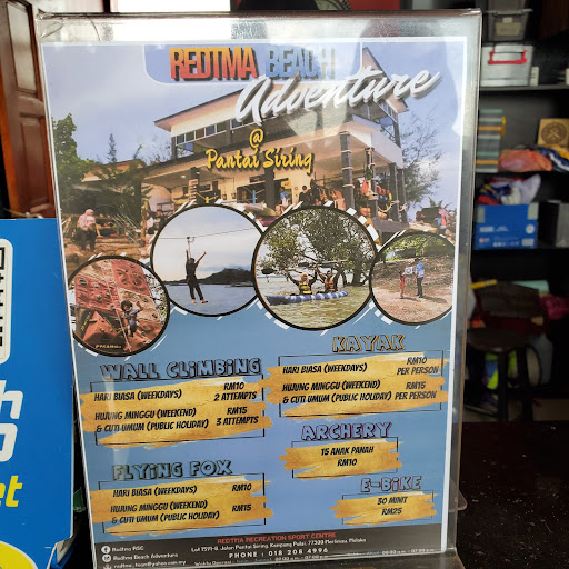 Went there on weekdays of school holidays and it was nearly lunch time. The office/shop was closed with a note "keluar sebentar". I saw lots of cool recreational equipments i.e. kayaks, life jackets, helmets. Was excited when I saw the wall climbing site. It is just right next to the Pantai Siring huge map board. The wall is suitable for beginner. I was wondering to see where the flying fox cable was. Butt didn't manage to find it. For those who wants to go here, landmarks: Klinik Kesihatan Umbai, Balai Polis Kandang, S.K. Alai. The sign to enter Pantai Siring is small, watch for it on your right. You have to trail down the jalan kampung. This place is at the right hand side of you have reached the end of the road by the beach. Quite tricky to reach here since it...