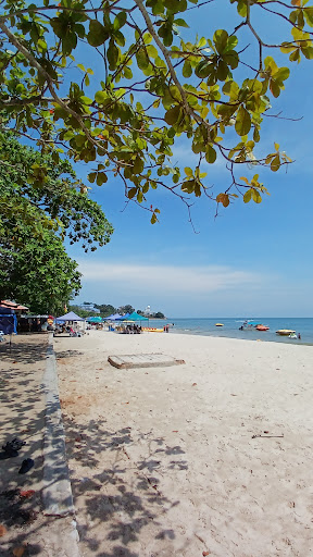 A good place to find cheap nice food. Only found 1 small shop run by 2 youngster,selling hipster-ish looking burger and drinks. A mid size Cholate caramel only cost RM 6($2sgd). My family and I bought a meal for 2 with 2 drinks..also some finger food which cost us a total of RM 15.50($5 sgd). The taste of local Malaysian food is pretty nice there,despite the place look very run down. Most shops are not open. You can rent shelter as not much shelter are available. The sun can be a lil too hot to stay out in the beach for a long period of time. A few activities like jet sky can be seen around the beach side. Locals bring their whole family which can be a lil crowded yet its good to see people enjoying their time...