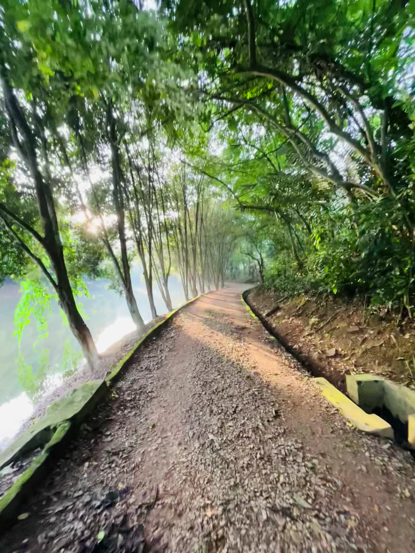 Eventhough the trail is unpaved it will give you more natural feeling when you go through it. Very calm place with birds chirping in the morning. Kids can enjoy the playground.