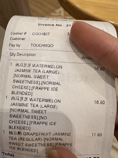 Staff attitude was the most terrible I've ever seen, i went that day and it was a malay girl at the ordering counter, we asked her whether the drink still available, her words never exceed 3 in a sentence. We asked whether the yunnan frappe available she say no, so we said white peach oolong, she was like not available aswell, then we went with osmanthus then in the end she said no more. Clearly she could've told you once and for all but....And we were like ??? In the end the guy behind her said the cream is finished so no more frappe series, leaving us in such speechless state, and she's like talking to herself the whole time and kept looking around but answering us properly :) it wasn't a pleasant visit but at least the drinks are good since it's the same. But something should be done with the workers there, please go under proper training how to serve customers before standing there and...