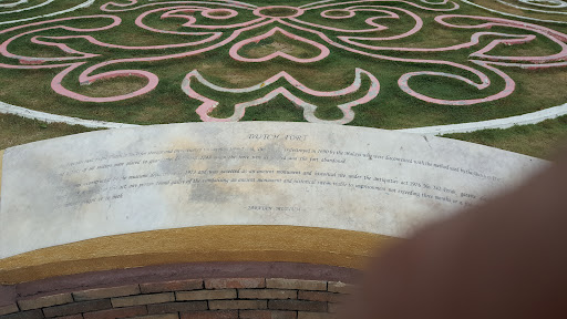 The colorful patterns you see in the background are part of the landscaped area surrounding the fort ruins, which is now a tourist attraction.