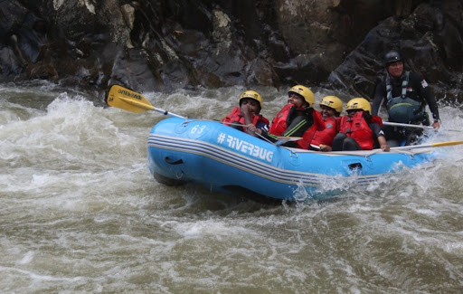We hopped onto a lorry which took us to the place where we were going to whitewater rafting. Bob was our guide who helped us with our life jackets, paddle and helmets. He then briefed us on the safety guidelines. Then it was time to hit the waters. We had to carry the raft to the river. Bob made sure we were safe and gave us clear instructions on how to manoeuvre the raft, esp when we went over the rapids.