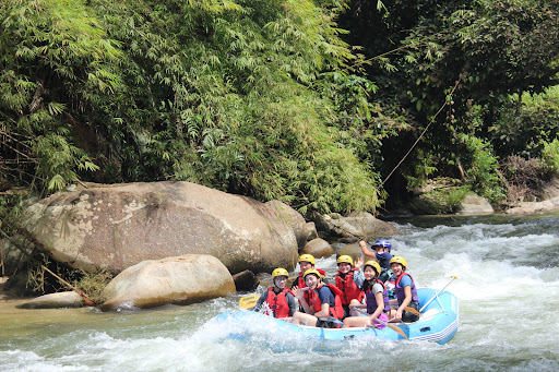 Then we head towards the white water rafting while still having a medium rain and the river watered look like 'teh tarik' colour. The instructor gave clear instructions and also conveyed what we need to do clearly in case of emergencies. The stream was quite rough at medium level and it was an andrenaline filled ride down stream. We had a person who fell off and swept away by the atream.We managed to executed a rescue mission that made the whole experience very memorable.