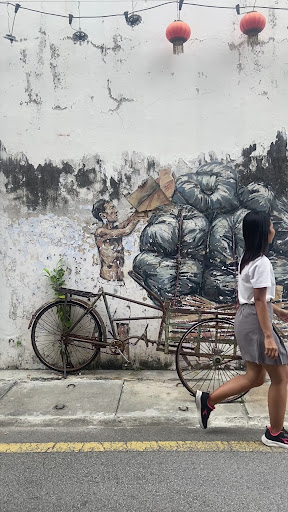 Mural art ini ada di Jalan Concubine lane ketiga, ternyata hostel yang aku pesan terletak di gang ini. Aku baru sadar waktu explore jalan ini, satu-satunya hostel di jalan Concubine lane ke-3 ini. Pilihan yang tepat, menemukan hostel tersembunyi di tengah Old Town. @decafeandresthouse