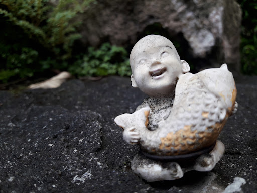 Next to the car park is a statue of Kuan Yin and a pond with turtles. The stairs from the car park are actually on the rear side of the cave. The stairs have been curved to resemble the shape of a carp's tail and the large opening at the other end of the cave where the laughing Buddha sits is supposed to be the carp's mouth. I can't quite see it myself!