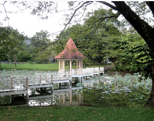 The 64 hectares (160 acres) site was the first public garden in Malaya, and was cherished for its beauty; it has been well-maintained since its opening. There are ten scenic lakes and ponds, which highlight the gardens. Along Residency Road, near the gardens, were golden rain trees (Malay: Samanea saman) or hujan-hujan (pterocarpus indicus) planted along the pathway. In George L. Peet’s A Journal in the Federal Capital, when he visited Taiping in 1933 he said “I know of no more lovely sight in this country than the Taiping gardens when the rays of the early morning sun are shining obliquely through their clumps of bamboo, palms and isolated trees scattered on islands among the expanse of water. One receives in that glorious half hour an experience of light in foliage that is quite unobtainable...
