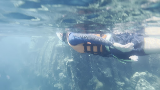 We found it super useful to have life jackets, which allowed us to swim for almost two hours without worrying about getting tired. A good mask is essential to enjoy all the details underwater, and we also recommend wearing a UV/UVB protection shirt to avoid sunburn.
