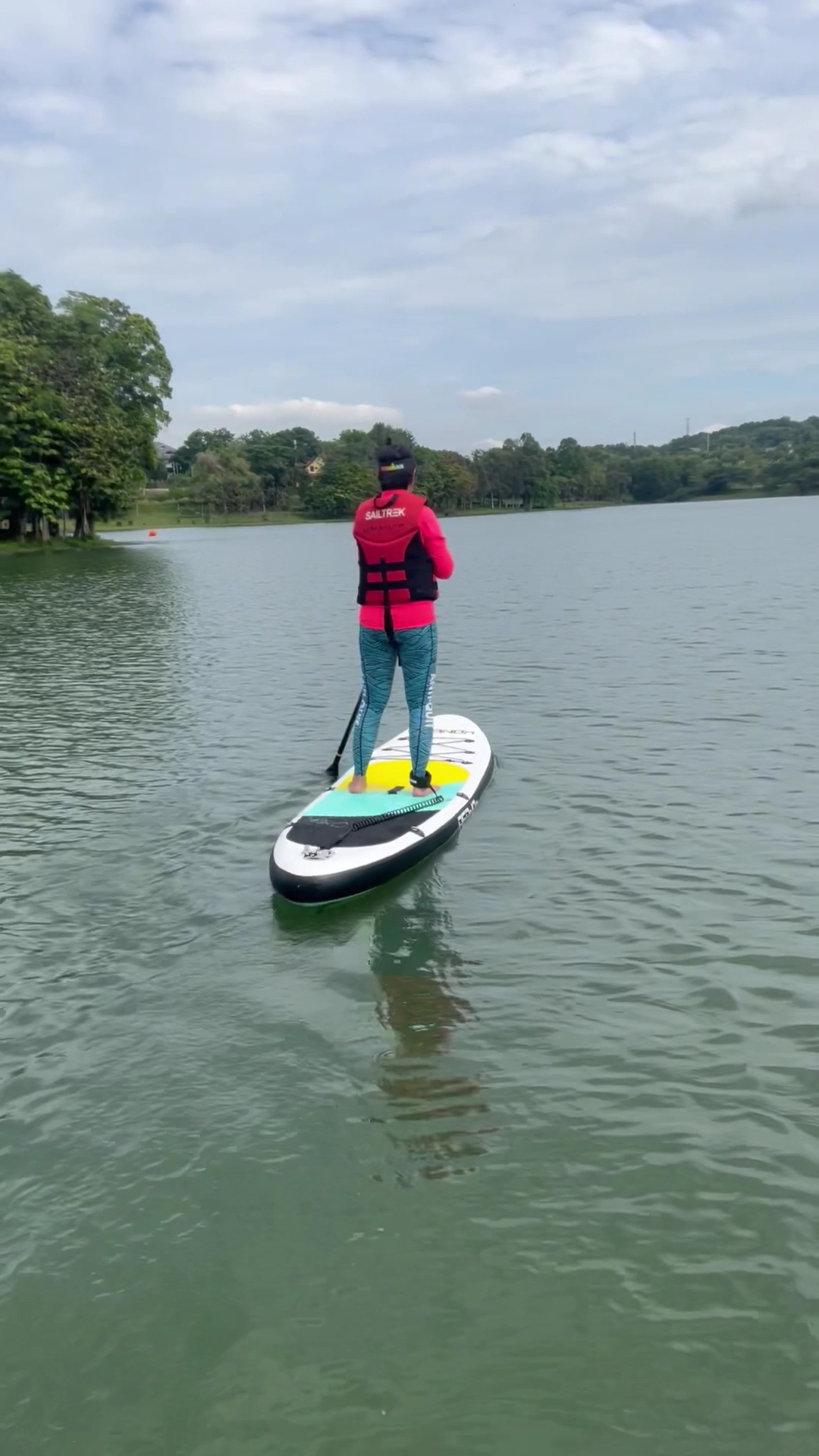 I find the current of the lake water is strong as you can see the mosses move quite fast on top of the water. It’s really not easy to maneuver the board around the lake. Especially when I stop paddling for taking photos, the current will bring my board away from my original place 😂😂😂 we were blessed with good weather, hence we enjoy our paddling there.